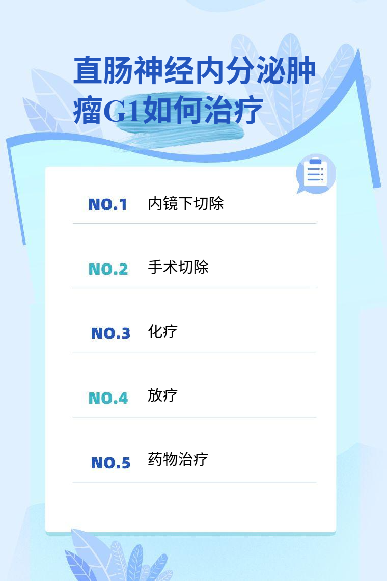 直肠神经内分泌肿瘤G1的治疗方法有内镜下切除、手术切除、化疗、放疗、药物治疗等。