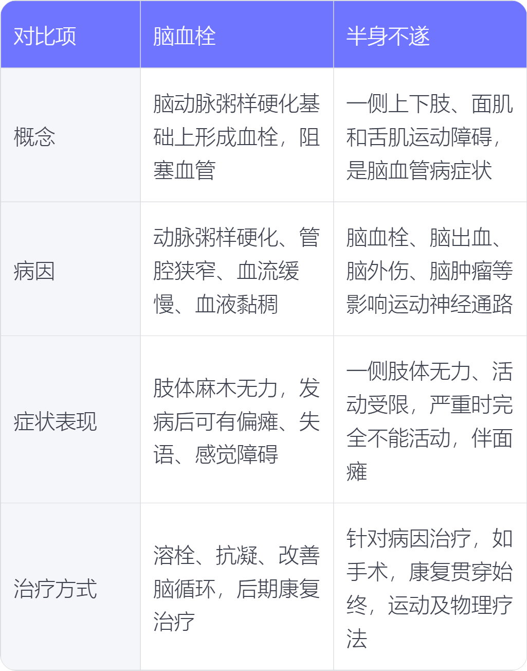 脑血栓与半身不遂在概念、病因、症状表现、治疗方式上存在不同。
