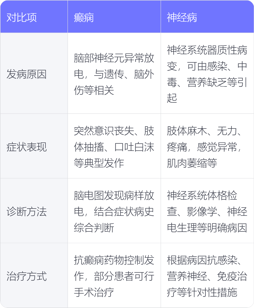 癫痫和神经病在发病原因、症状表现、诊断方法、治疗方式上存在不同。