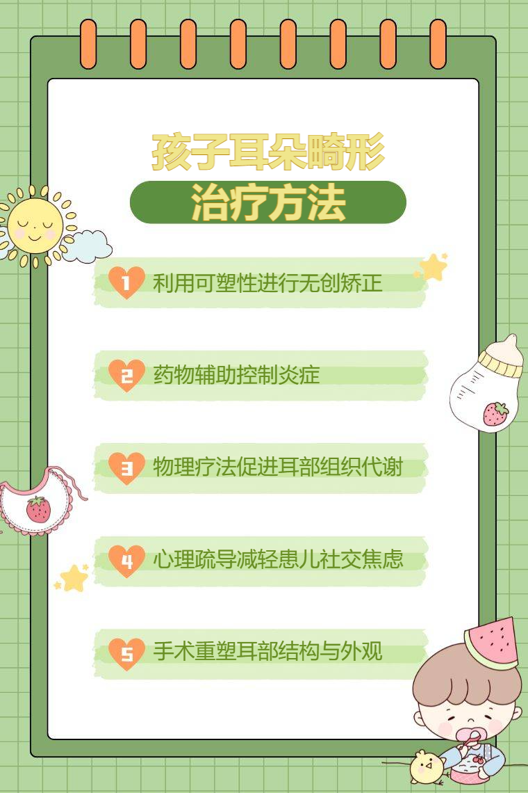 孩子耳朵畸形的治疗方法有佩戴矫正器、药物治疗、物理治疗、心理干预、手术治疗等。
