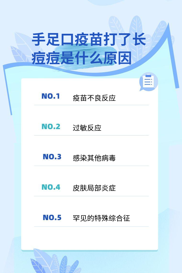 5. 罕见的特殊综合征:极个别情况下,接种手足口疫苗后可能出现罕见的特殊综合征,导致皮肤长痘痘等异常表现,但这种情况罕见,需要专业医生进行全面评估和诊断。