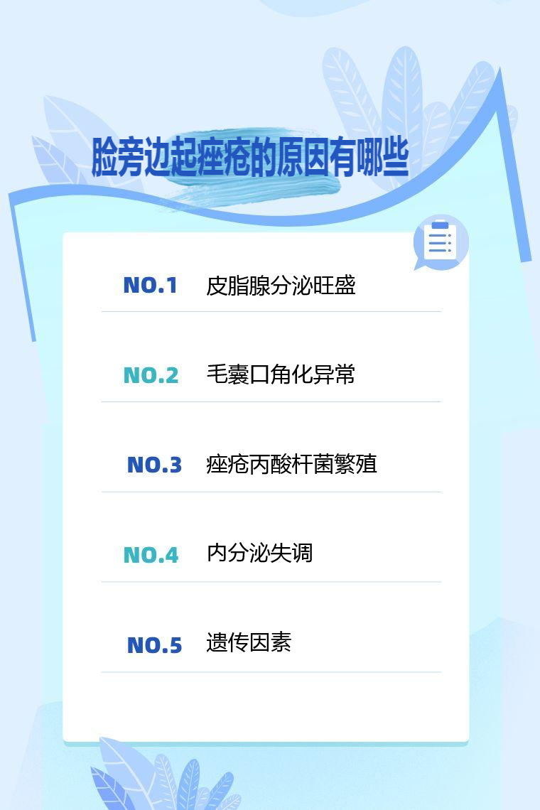 脸旁边起痤疮的原因有皮脂腺分泌旺盛、毛囊口角化异常、痤疮丙酸杆菌繁殖、内分泌失调、遗传因素等。