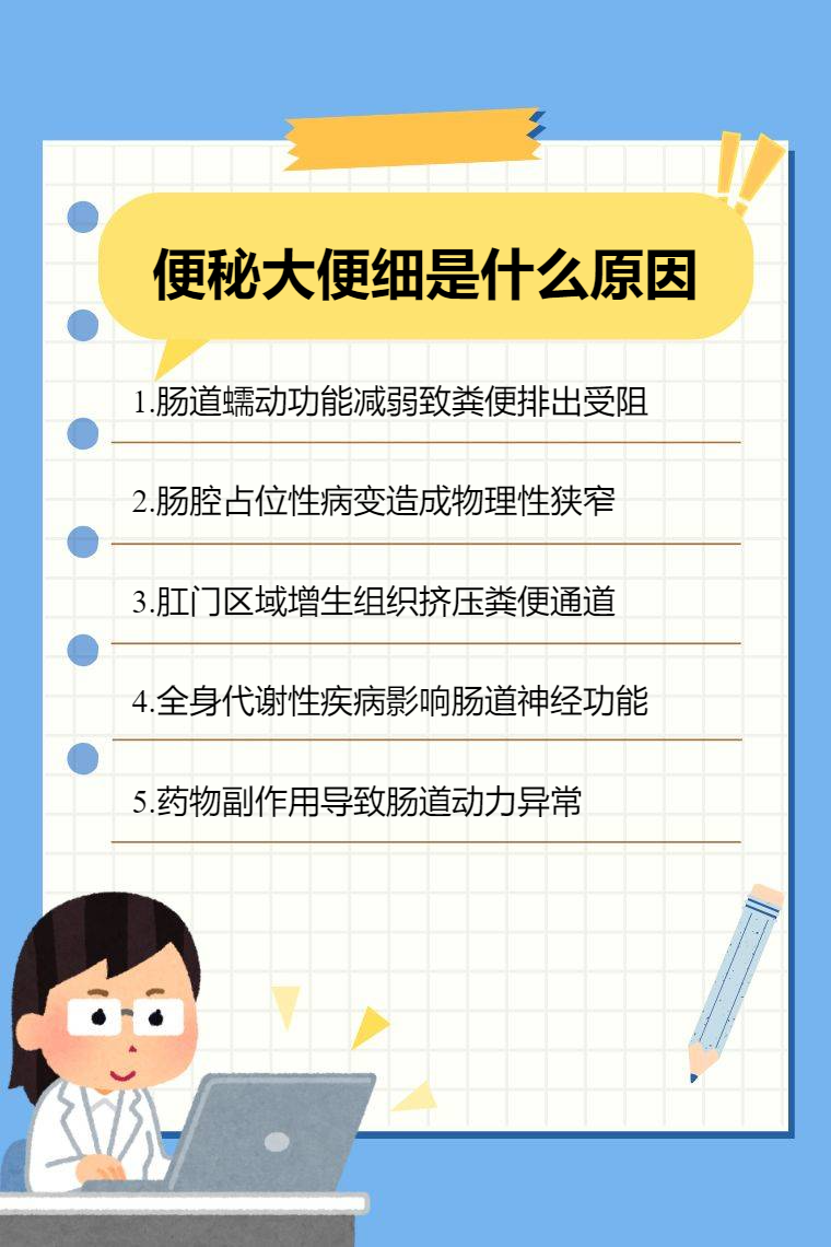 便秘大便细的原因有肠道蠕动减慢、肠道狭窄、肛门直肠疾病、全身性疾病、药物副作用等。