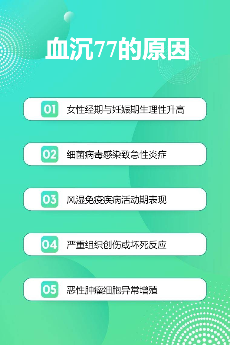 血沉77可能是由生理期、妊娠、炎症感染、自身免疫性疾病、组织损伤等情况导致。