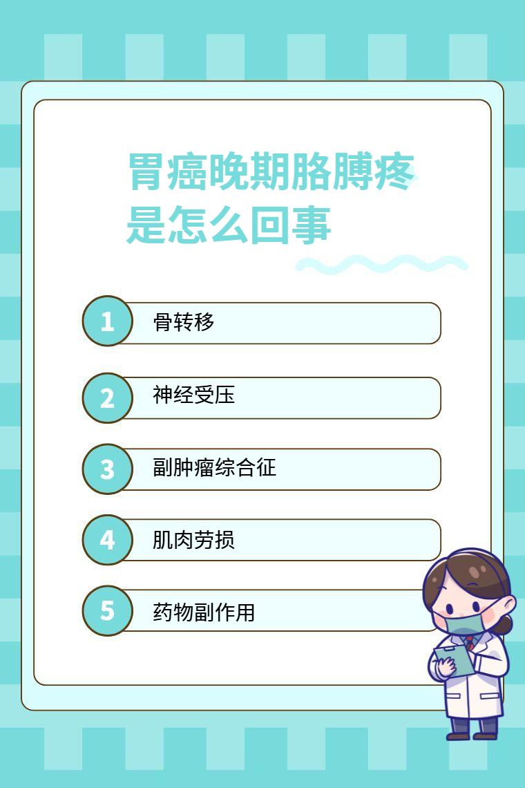 胃癌晚期胳膊疼可能是由于骨转移、神经受压、副肿瘤综合征、肌肉劳损、药物副作用等。