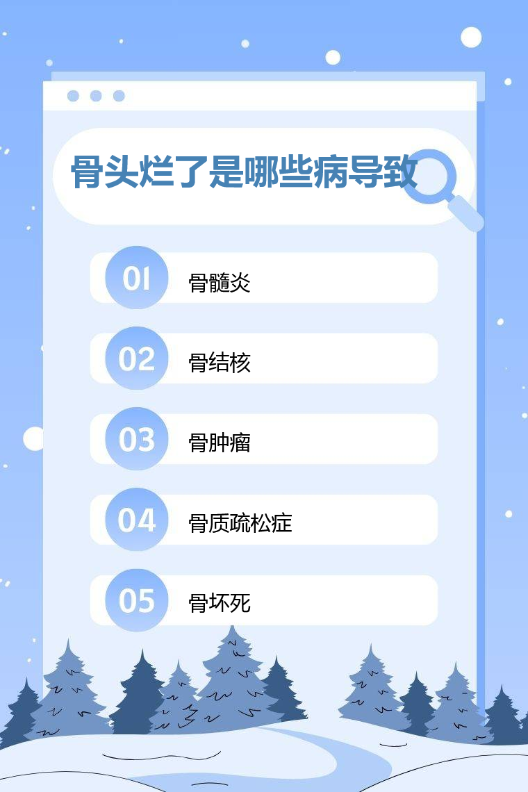 骨头烂了可能由骨髓炎、骨结核、骨肿瘤、骨质疏松症、骨坏死等疾病导致。