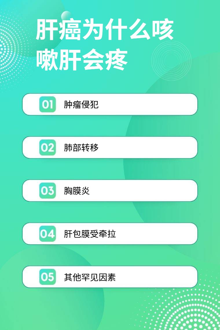 肝癌咳嗽时肝疼常见原因有肿瘤侵犯、肺部转移、胸膜炎、肝包膜受牵拉、其他罕见因素等。