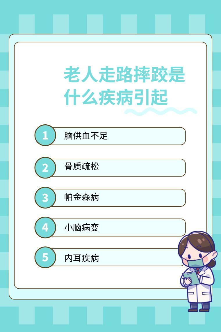老人走路摔跤可能由脑供血不足、骨质疏松、帕金森病、小脑病变、内耳疾病等引起。
