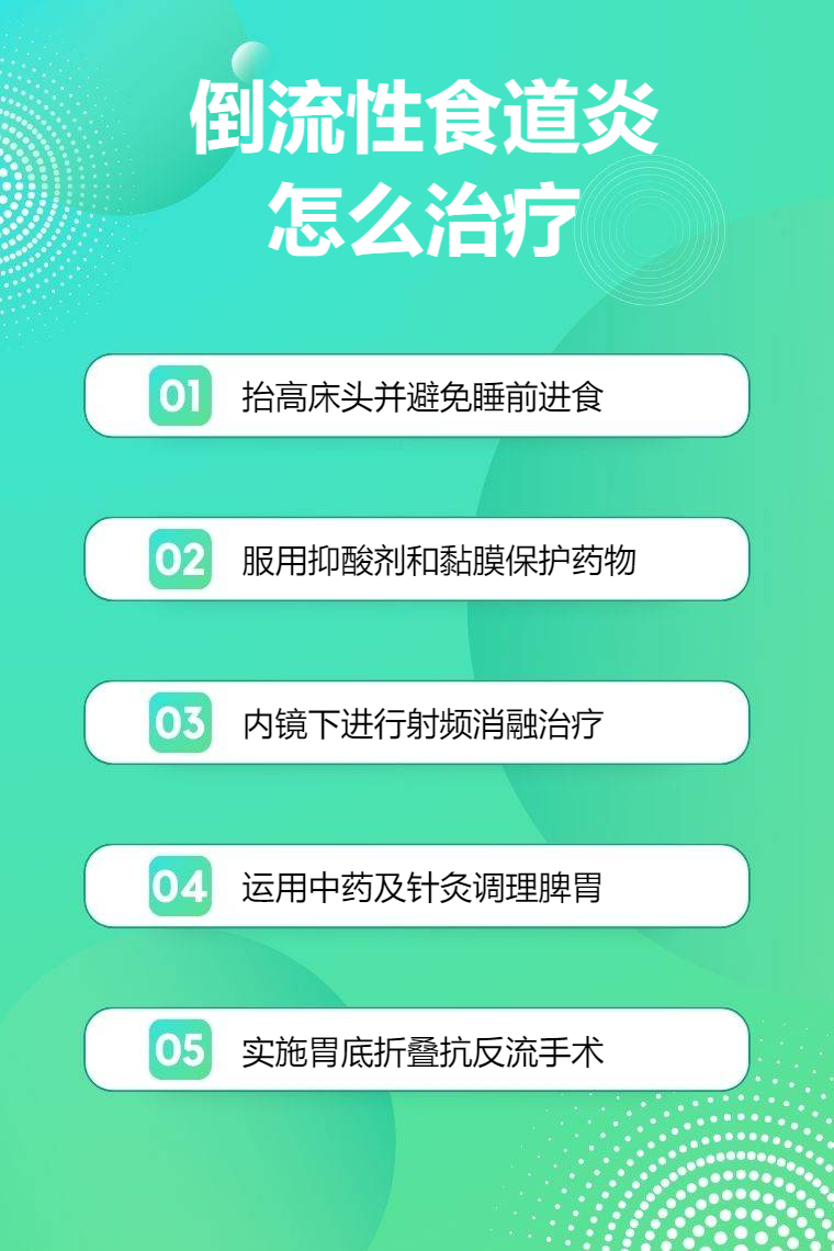 倒流性食道炎的治疗方法主要有调整生活方式、药物治疗、内镜治疗、中医治疗、手术治疗等。