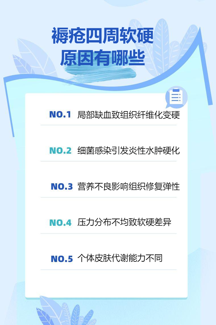 褥疮四周软硬的原因有局部血液循环障碍、感染因素、组织营养不良、皮肤受压不均、个体差异等。