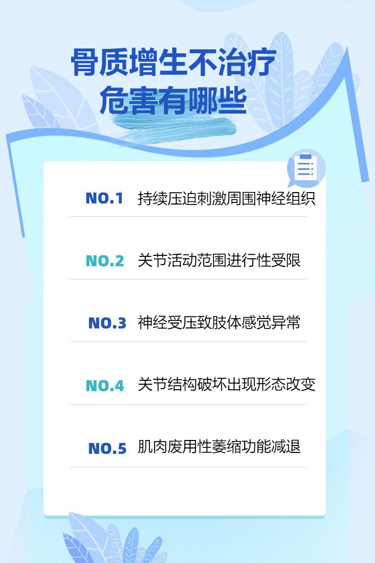 骨质增生不治疗可能引发疼痛加剧、活动受限、肢体麻木、关节畸形、肌肉萎缩等危害。