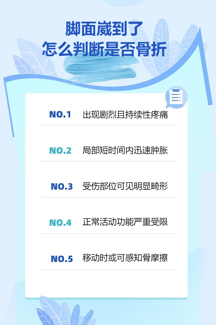 5. 骨擦音或骨擦感:在轻轻移动受伤脚面时,若感觉到骨头之间相互摩擦产生的声音或摩擦感,基本可以判断存在骨折,但这种方法需谨慎操作,避免加重损伤。