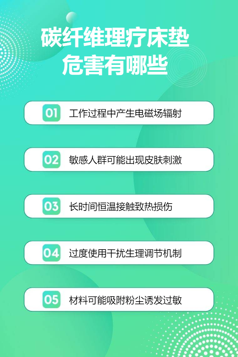 碳纤维理疗床垫可能存在电磁辐射、皮肤过敏、低温烫伤、影响体内平衡、引发呼吸道问题等危害。