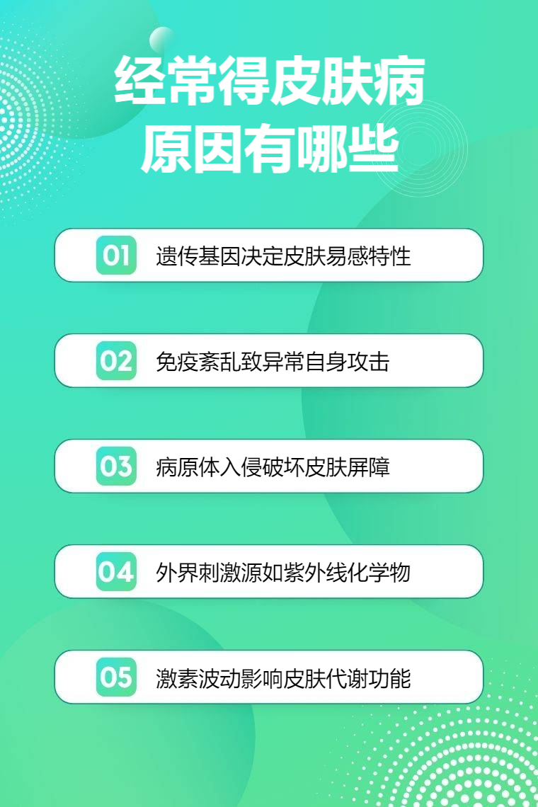 经常得皮肤病的原因有遗传因素、免疫系统异常、感染因素、环境因素、内分泌失调等。
