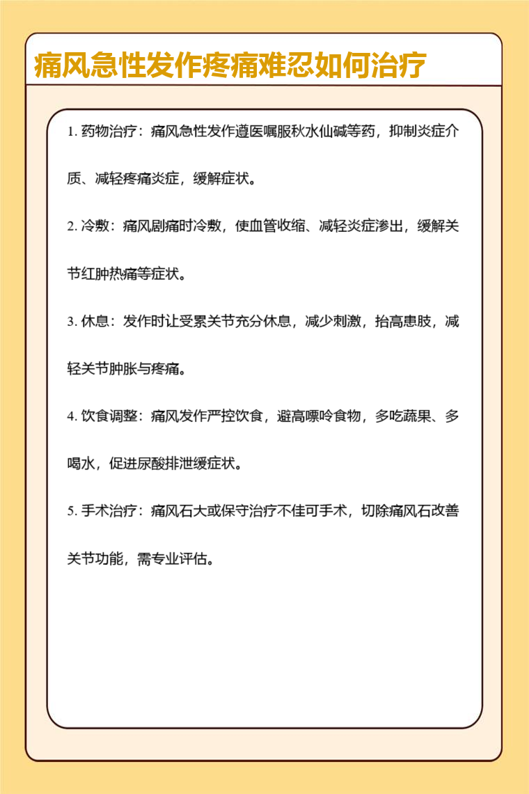 痛风急性发作疼痛难忍可通过药物治疗、冷敷、休息、饮食调整、手术治疗等方法缓解。
