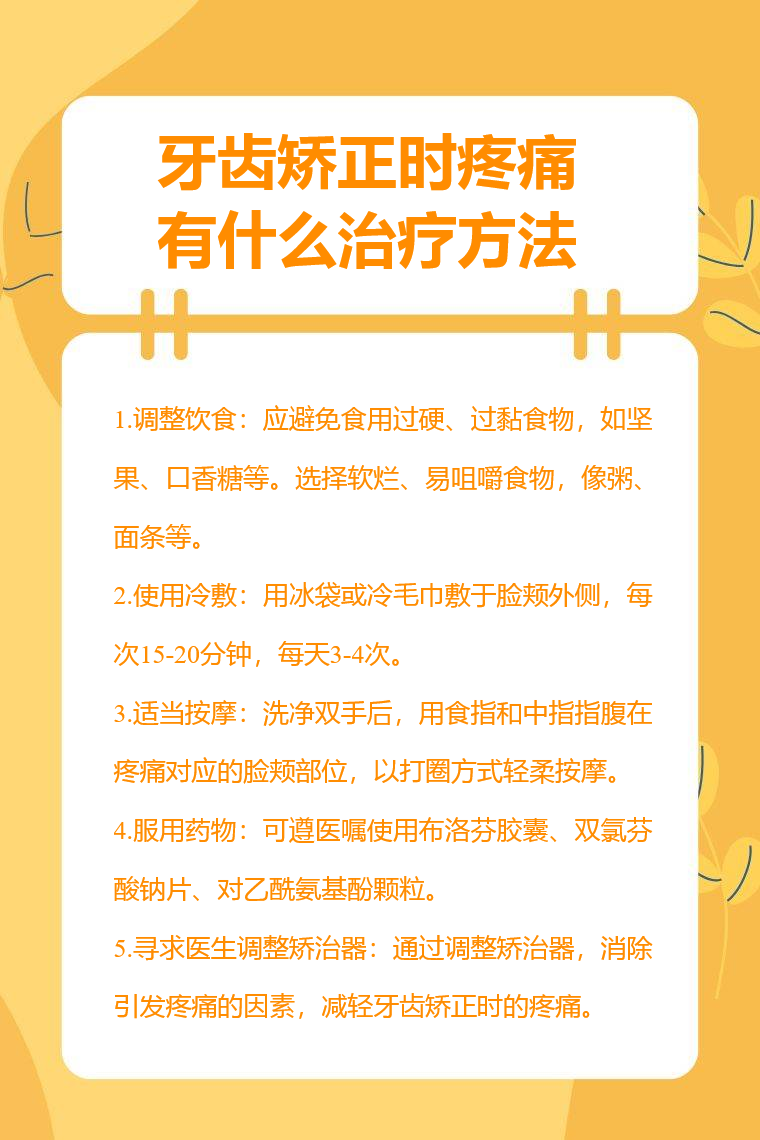 牙齿矫正时疼痛可以通过调整饮食、使用冷敷、适当按摩、服用药物、寻求医生调整矫治器等方法缓解。