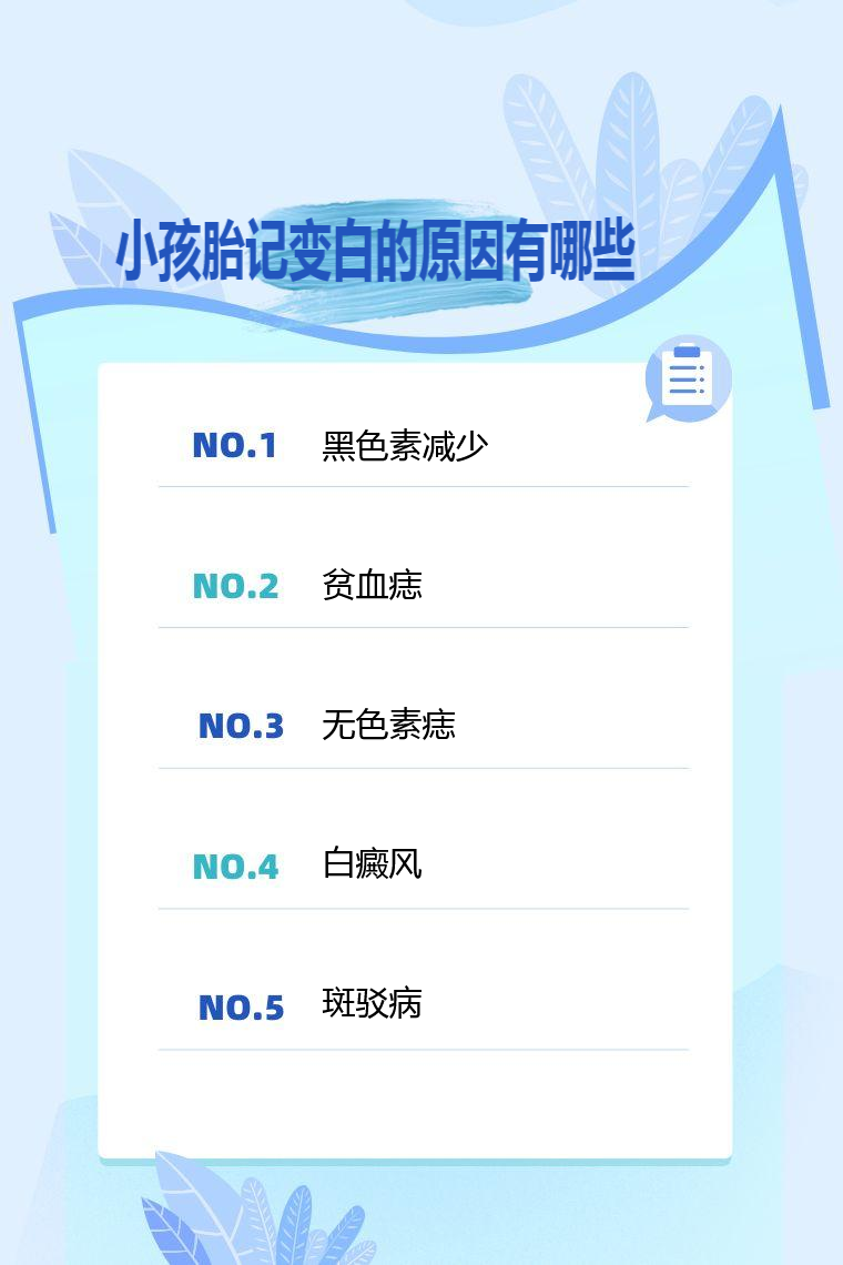 小孩胎记变白的原因有黑色素减少、贫血痣、无色素痣、白癜风、斑驳病等。