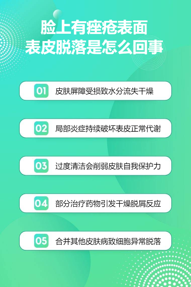 脸上有痤疮且表面表皮脱落可能是由于皮肤干燥、炎症刺激、过度清洁、药物副作用、皮肤疾病等情况导致。