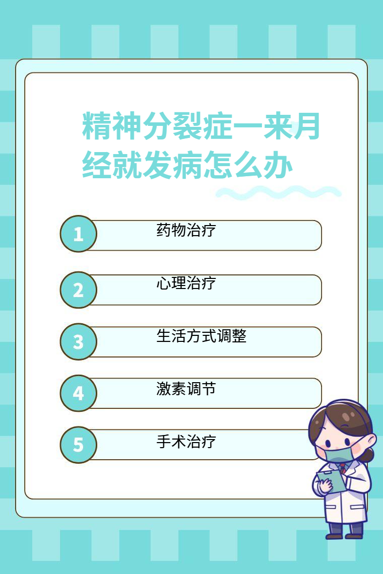 对于精神分裂症一来月经就发病的情况,可通过药物治疗、心理治疗、生活方式调整、激素调节、手术治疗等方法应对。