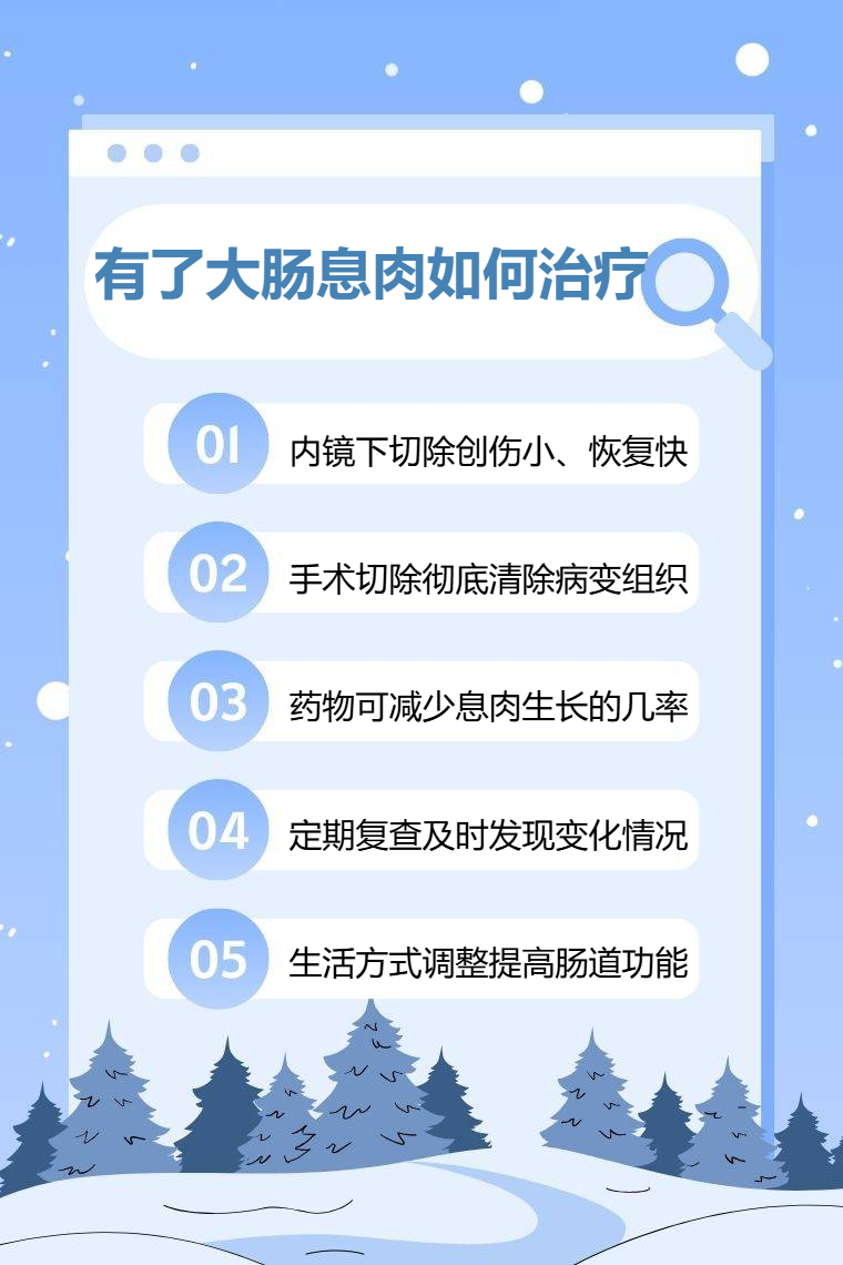 有了大肠息肉可通过内镜下切除、手术切除、药物治疗、定期复查、生活方式调整等方法进行治疗。