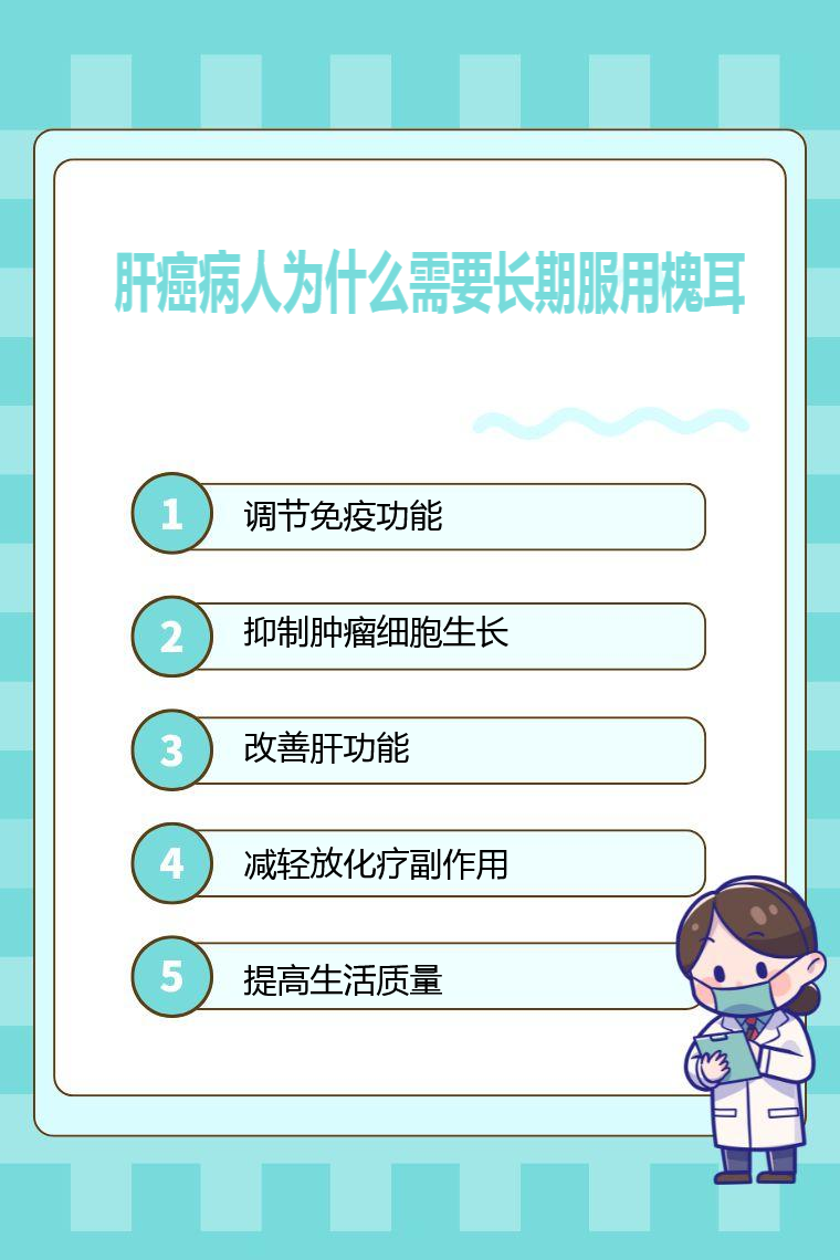 肝癌病人需要长期服用槐耳,常见原因有调节免疫功能、抑制肿瘤细胞生长、改善肝功能、减轻放化疗副作用、提高生活质量等。