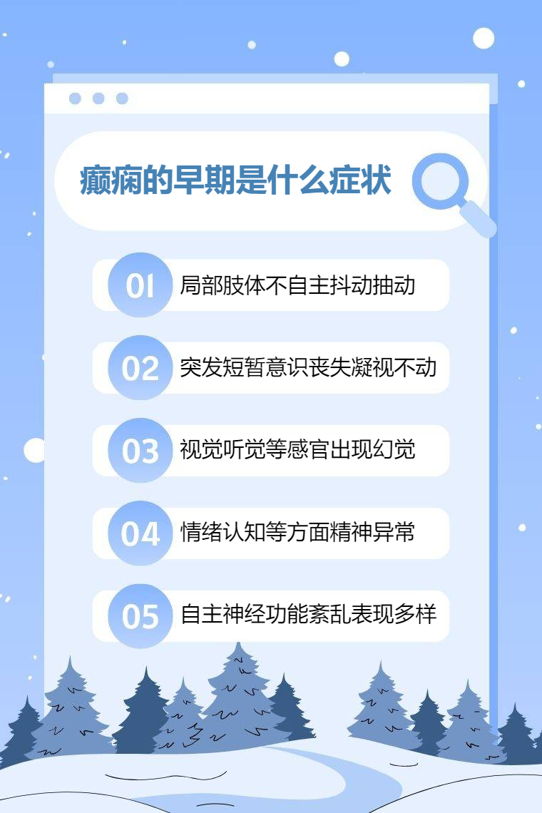 4. 精神症状:早期可能出现情绪的改变,如突然的恐惧、焦虑、烦躁等,还可能有认知障碍,如记忆力减退、注意力不集中等,部分患者会有幻觉、错觉等表现。