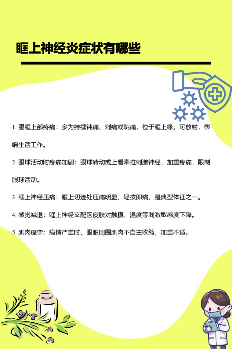 2. 眼球活动时疼痛加剧:眼球转动或向上看时,会牵拉刺激眶上神经,导致疼痛明显加重,限制眼球正常活动范围。