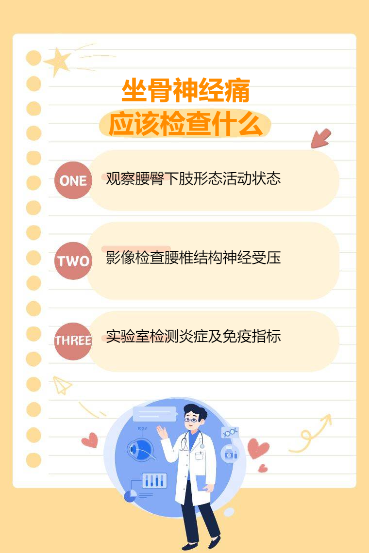 坐骨神经痛通常需进行体格检查、影像学检查、实验室检查等。