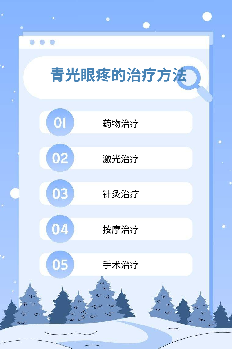 青光眼疼的治疗方法主要有药物治疗、激光治疗、针灸治疗、按摩治疗、手术治疗等。