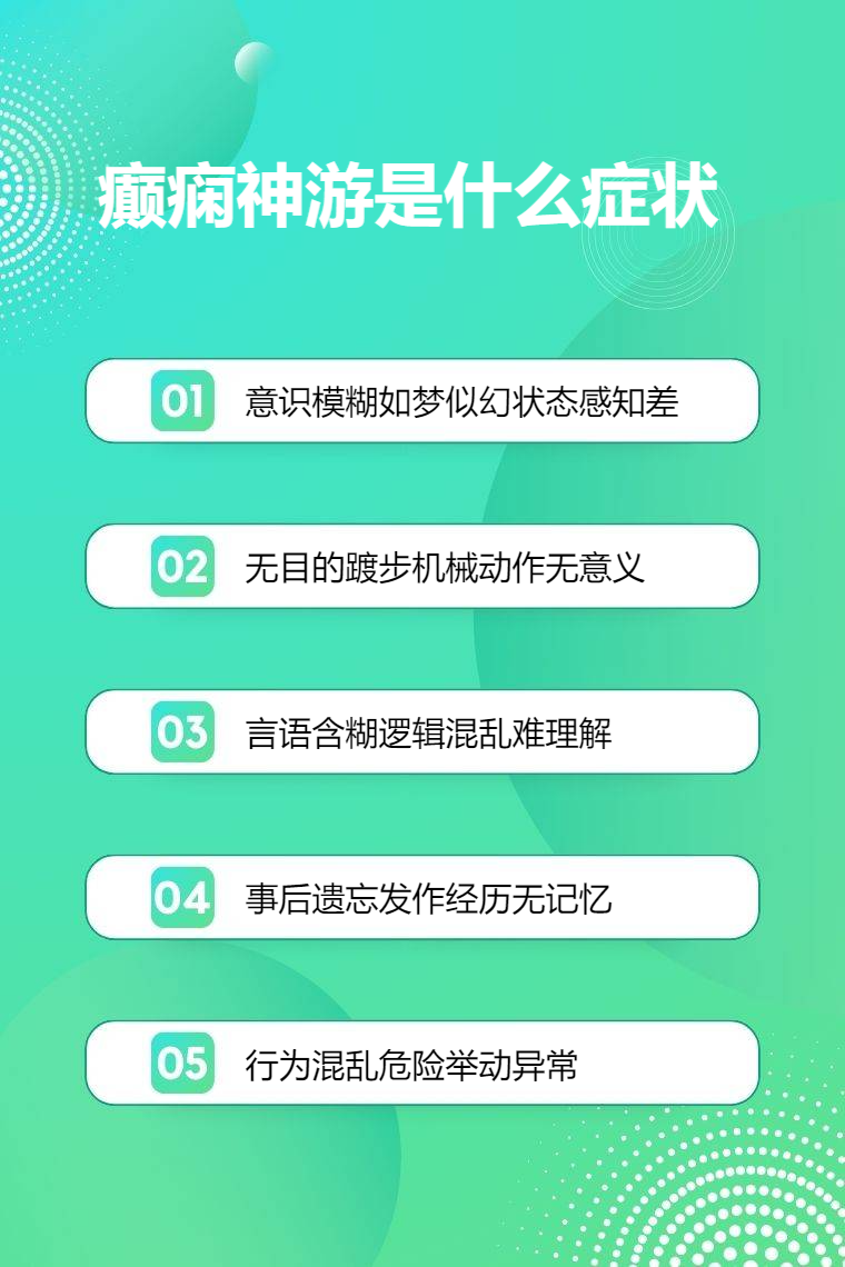 癫痫神游的症状包括意识障碍、无目的活动、言语异常、遗忘现象、行为紊乱等。
