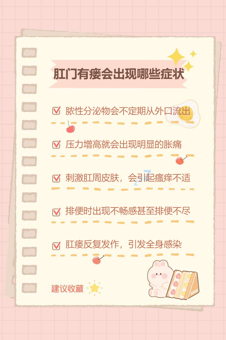 1. 肛周反复流脓:这是肛瘘较为典型的症状,瘘管内的脓性分泌物会不定期从外口流出,有时量多,有时量少,流出后局部会感觉轻松,但之后又会再次积聚,反复出现。
