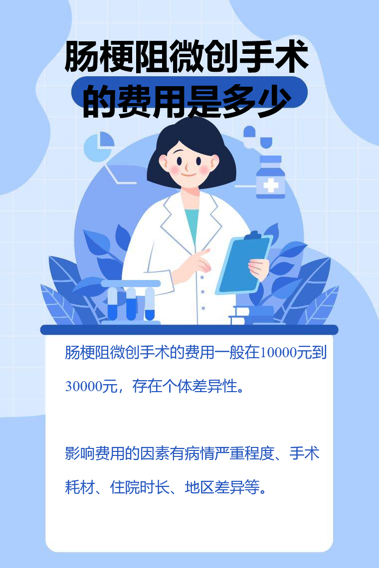 肠梗阻微创手术的费用一般在10000元到30000元,存在个体差异性。影响费用的因素有病情严重程度、手术耗材、住院时长、地区差异等。
