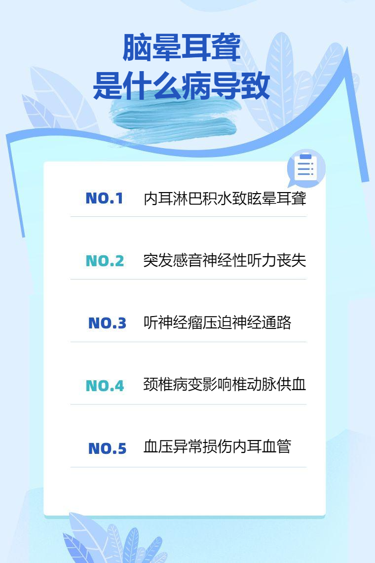 3. 听神经瘤:起源于听神经鞘膜的良性肿瘤,随着肿瘤的生长,会压迫听神经及周围组织,导致听力下降、耳鸣、眩晕等症状。眩晕多为不稳感,较少出现旋转性眩晕,还可能伴有面部麻木、面瘫等其他神经症状。