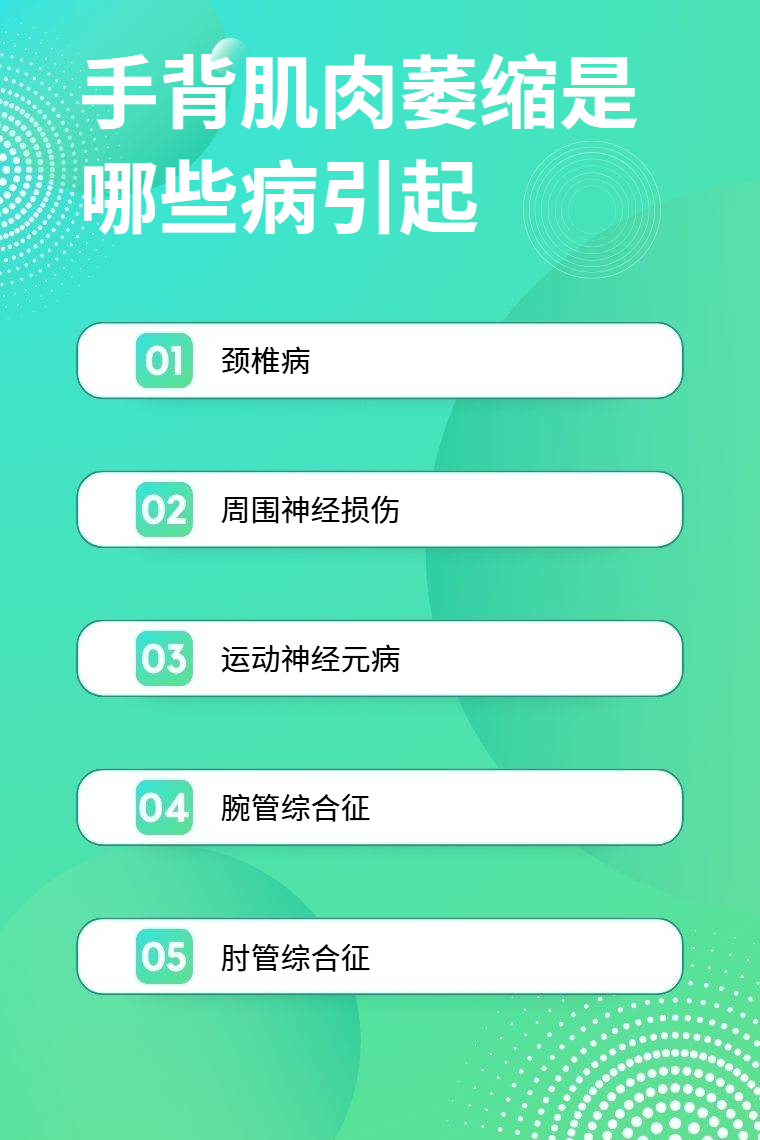 手背肌肉萎缩可由颈椎病、周围神经损伤、运动神经元病、腕管综合征、肘管综合征等引起。