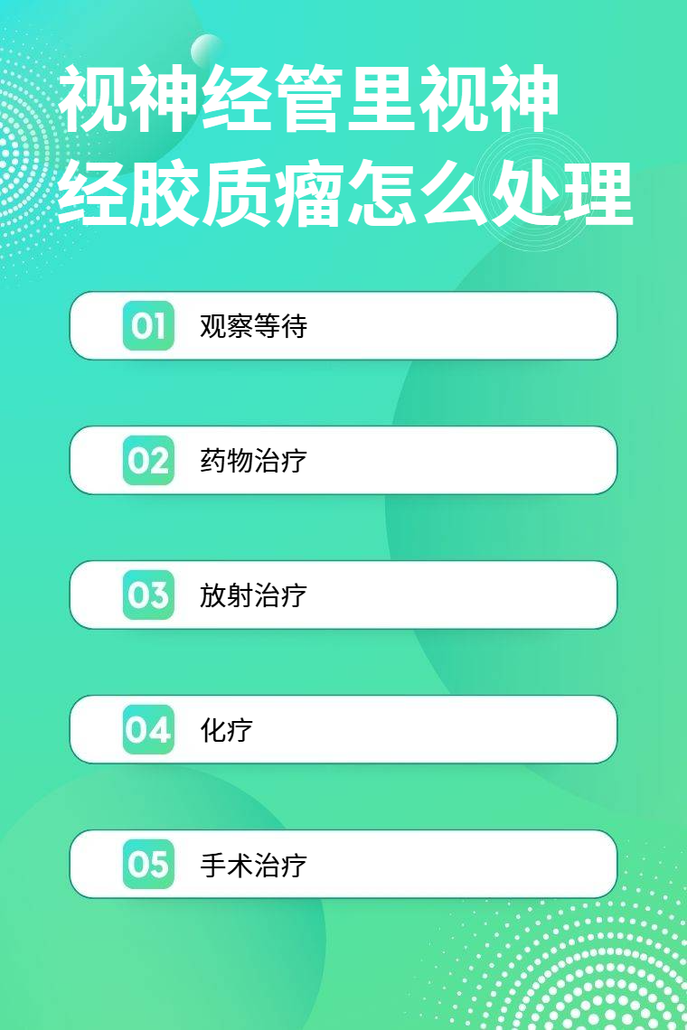 视神经管里视神经胶质瘤的处理方法有观察等待、药物治疗、放射治疗、化疗、手术治疗等。