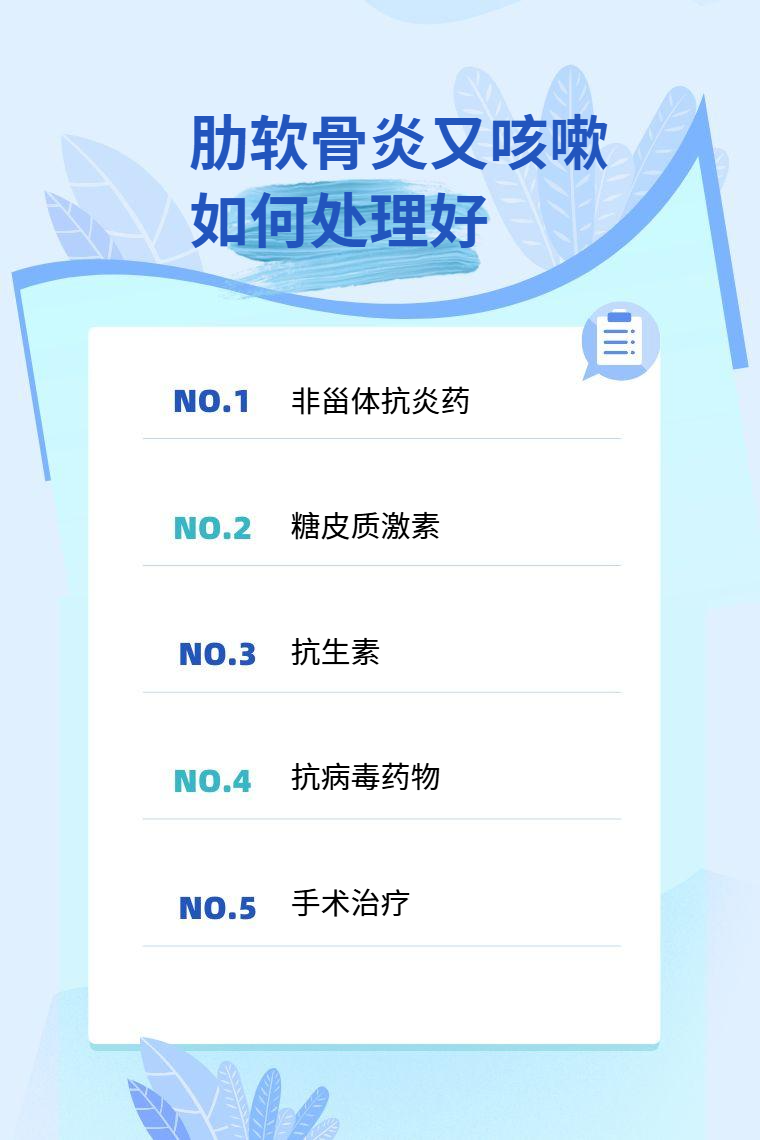肋软骨炎又咳嗽可以通过使用非甾体抗炎药、糖皮质激素、抗生素、抗病毒药物、手术治疗等方式处理好。