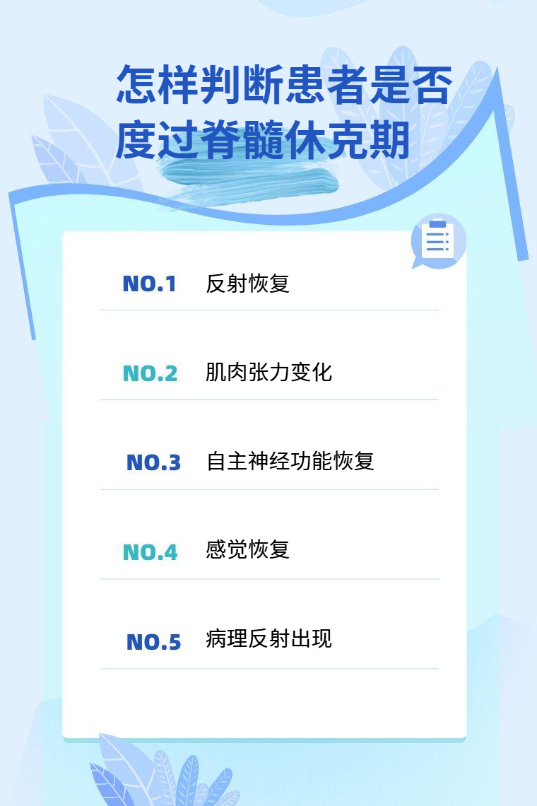 1. 反射恢复:脊髓休克期时,脊髓反射功能会暂时丧失,各种反射如膝反射、跟腱反射等均消失。当这些浅反射和深反射逐渐恢复,意味着脊髓休克期可能即将结束。比如原本无法引出的膝反射,在某一阶段可以引出,这是一个重要的标志。