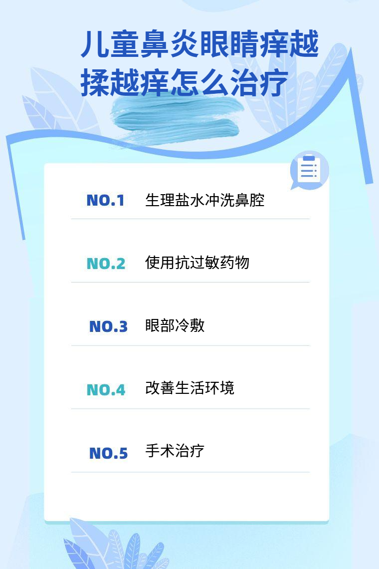 儿童鼻炎眼睛痒越揉越痒可通过生理盐水冲洗鼻腔、使用抗过敏药物、眼部冷敷、改善生活环境、手术治疗等方法来缓解症状。