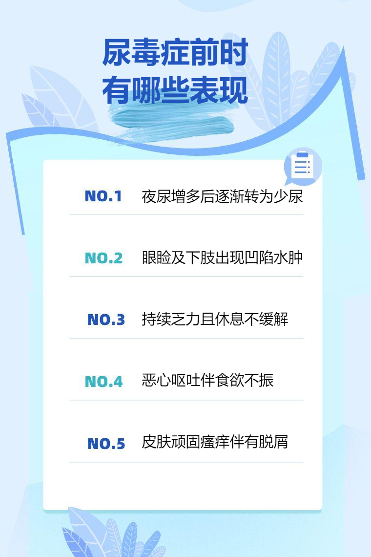 日常生活中要关注自身健康状况,定期体检,及时发现肾脏问题。一旦出现上述症状,应及时就医检查。若已确诊肾脏疾病,需严格遵医嘱治疗,控制病情发展,延缓尿毒症的到来。