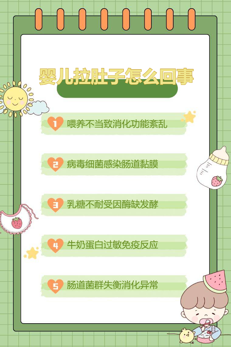 婴儿拉肚子常见于喂养不当、感染性因素、乳糖不耐受、牛奶蛋白过敏、肠道菌群失调等情况,不同诱因导致的腹泻在临床表现与干预措施上存在一定差异。