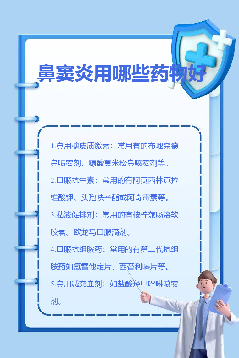 鼻窦炎患者治疗时遵医嘱选用鼻用糖皮质激素、口服抗生素、黏液促排剂、口服抗组胺药、鼻用减充血剂等药物好。