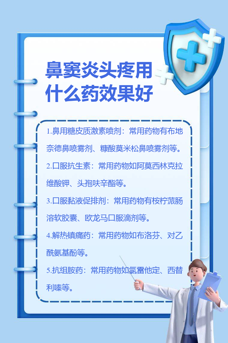 1.鼻用糖皮质激素喷剂:能减轻鼻窦黏膜的炎症反应与水肿,促进鼻窦引流,从而缓解因鼻窦压力增高引发的头疼,常用药物有布地奈德鼻喷雾剂、糠酸莫米松鼻喷雾剂等,需按照说明书或医嘱规范使用,每日1-2次,每次每个鼻孔喷1-2下,注意避免长期滥用导致鼻腔干燥、鼻出血等不良反应,儿童使用需在医生指导下调整剂量。