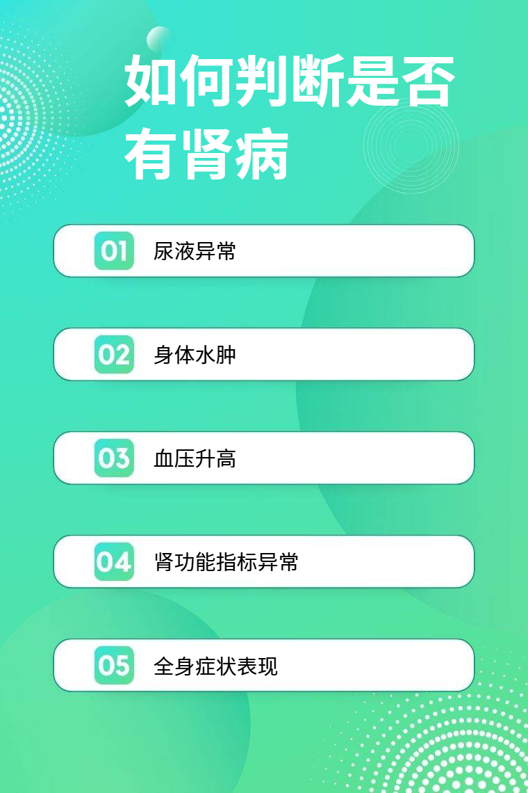 判断是否有肾病可通过观察尿液异常、身体水肿、血压升高、肾功能指标异常、全身症状表现等方式。