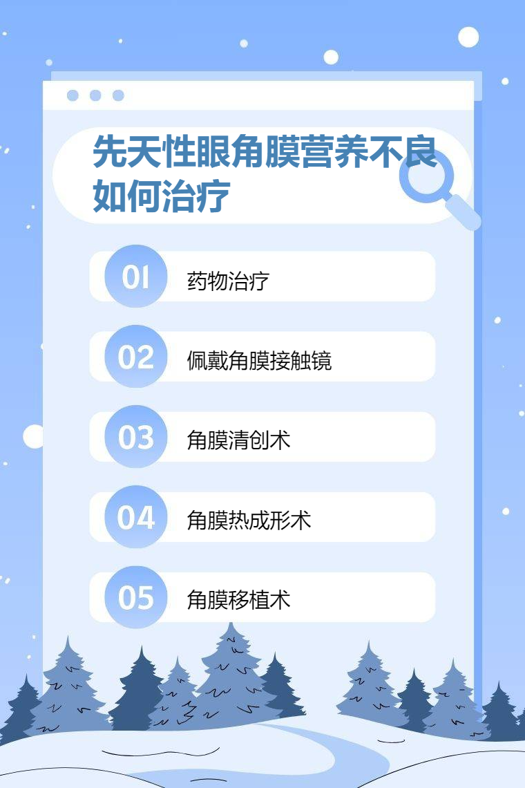 先天性眼角膜营养不良的治疗方法有药物治疗、佩戴角膜接触镜、角膜清创术、角膜热成形术、角膜移植术等。