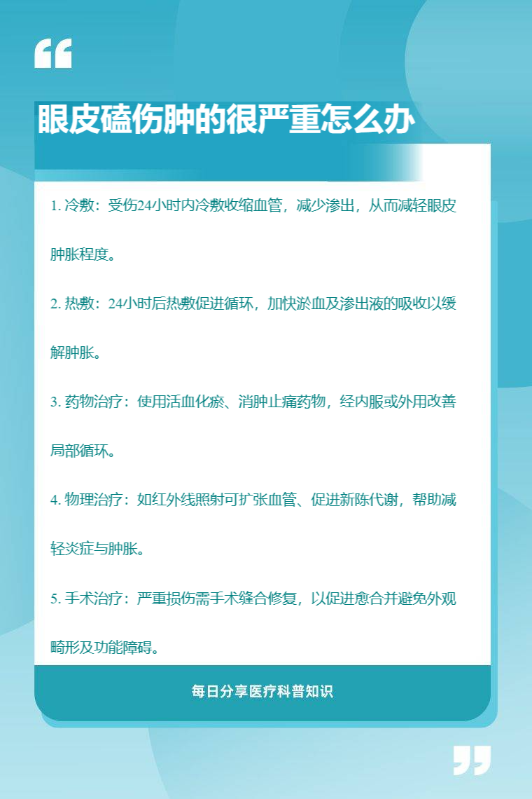 眼皮磕伤肿得很严重可通过冷敷、热敷、药物治疗、物理治疗、手术治疗等方法来缓解。