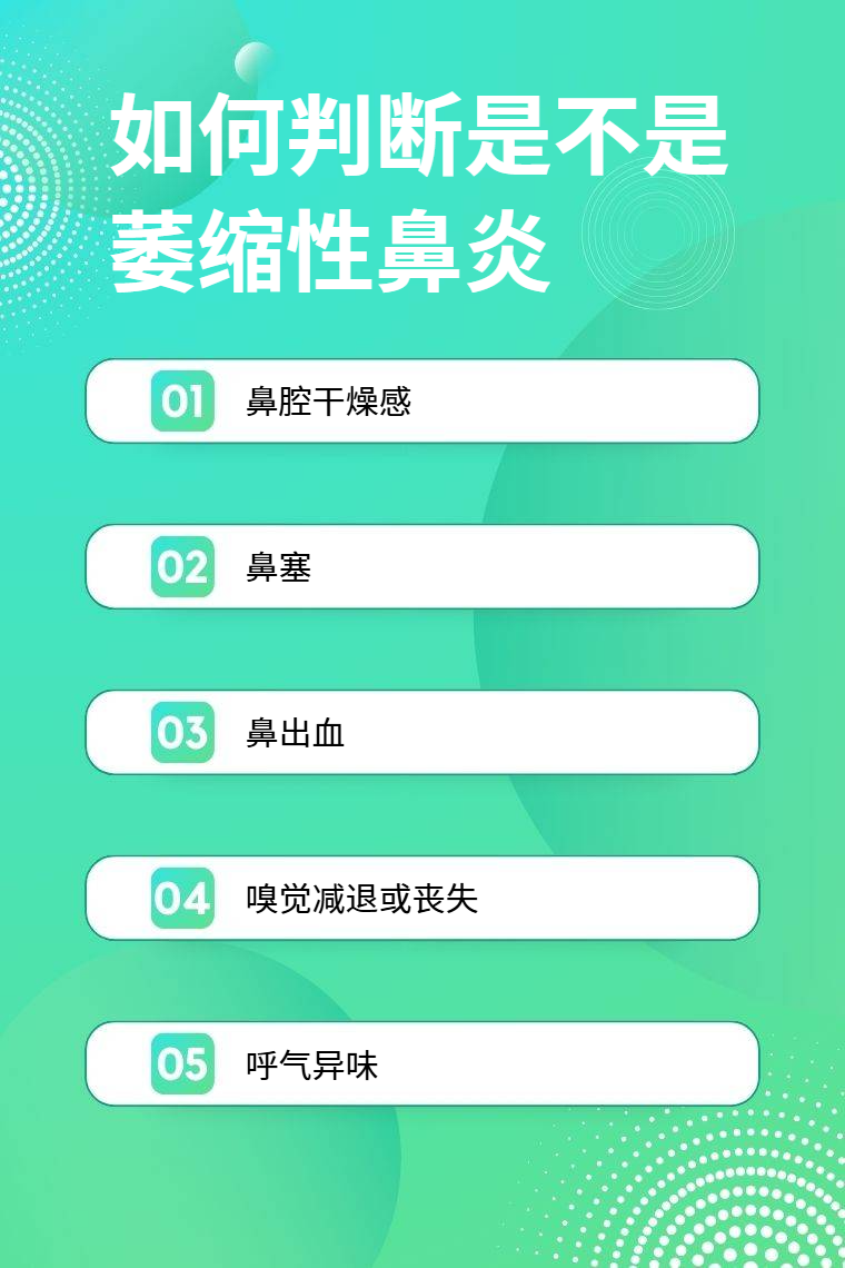 1.鼻腔干燥感:鼻腔黏膜腺体萎缩导致分泌功能显著下降,鼻腔内黏液分泌减少,患者常感到鼻腔持续干燥,即使处于湿润环境中也难以缓解,部分患者还会伴随鼻腔内异物感或轻微烧灼感。