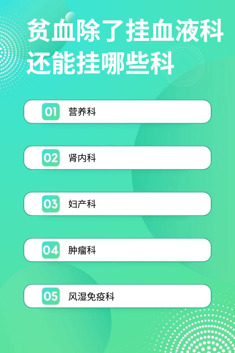 贫血除了挂血液科,还能挂营养科、肾内科、妇产科、肿瘤科、风湿免疫科等。