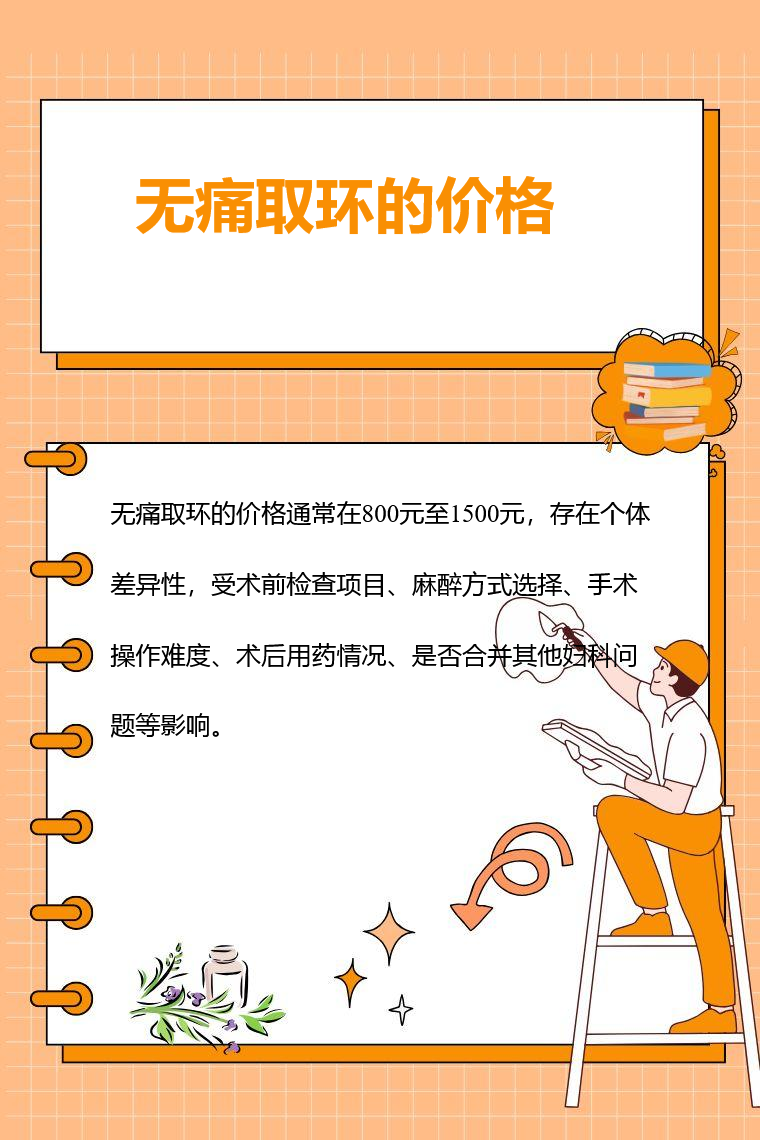 无痛取环的价格通常在800元至1500元,存在个体差异性,受术前检查项目、麻醉方式选择、手术操作难度、术后用药情况、是否合并其他妇科问题等影响。
