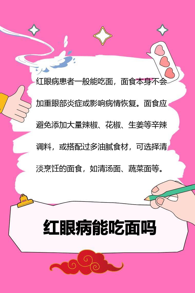 红眼病患者一般能吃面,面食本身不会加重眼部炎症或影响病情恢复。