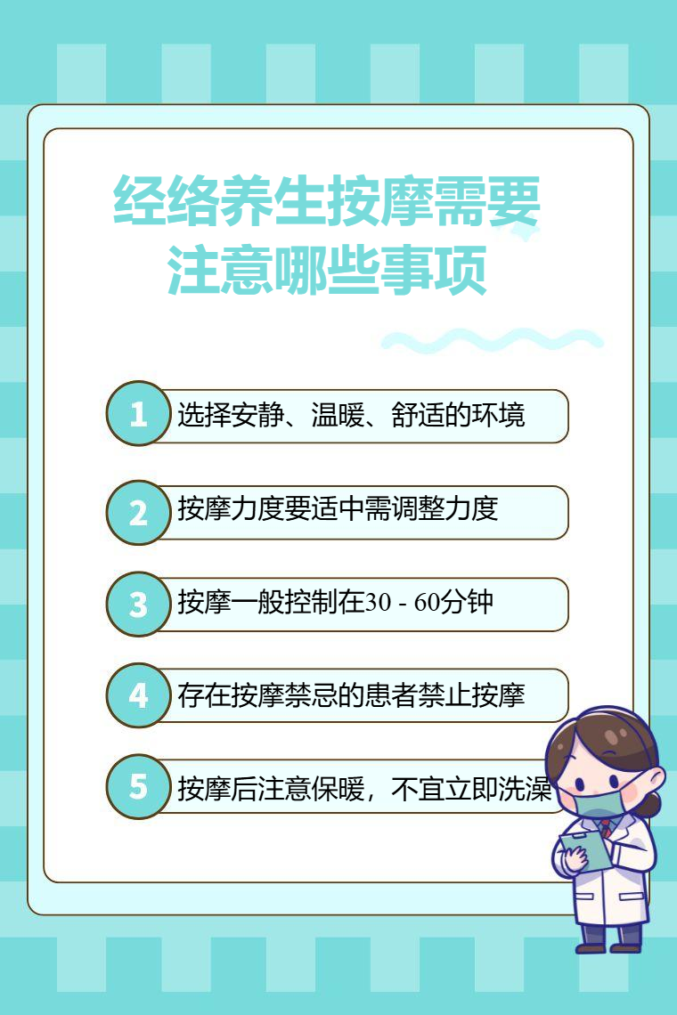 经络养生按摩需注意按摩前准备、按摩力度、按摩时间、按摩禁忌、按摩后护理等。